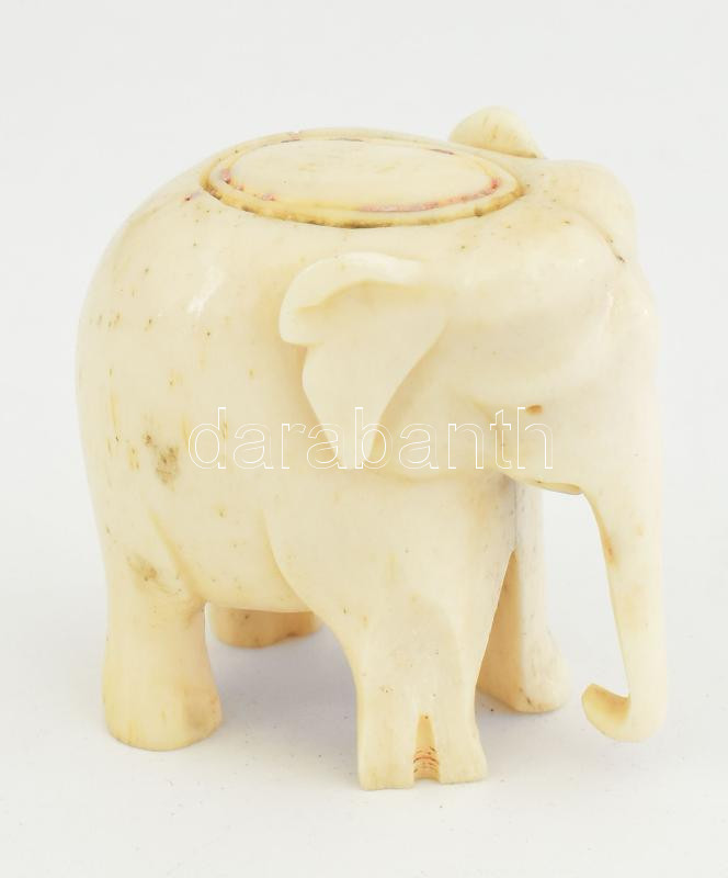 Faragott csont elefánt emléktárgy tartó, kopással, m: 5 cm