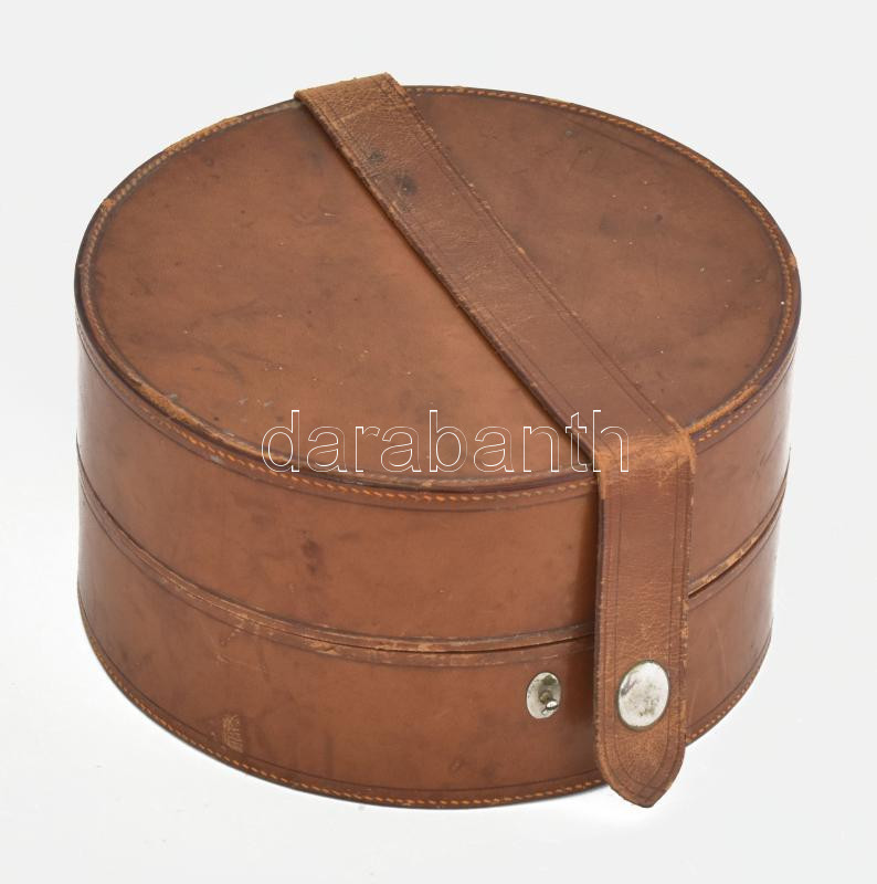 Würzl & Söhne antik bécsi bőr keménygallér tartó, jelzéssel, kopással, d: 16,5 cm