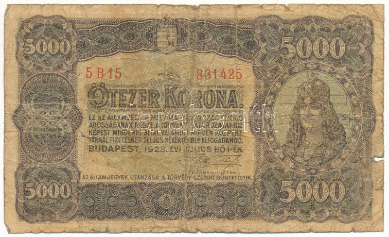 1923. 5000K "5B15 831425", nyomdahely jelölés nélkül T:VG,G Adamo K39