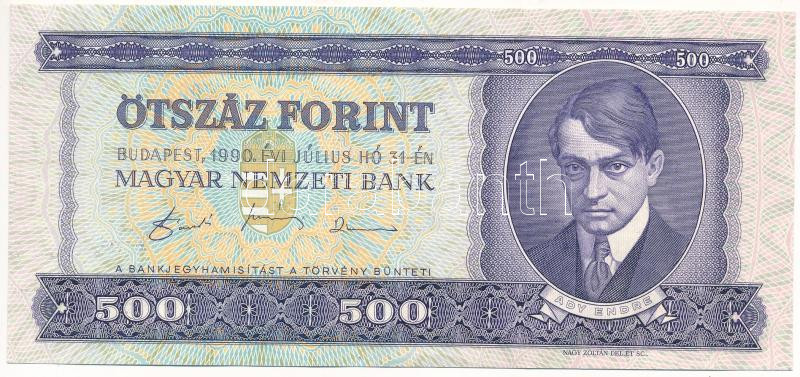 1990. 500Ft nyomdai festékfoltokkal T:AU hullámos papír Adamo F43