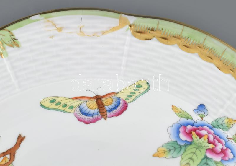 Herendi Viktória mintás 1db mélytányér, kézzel festett porcelán, jelzett, kopásnyomokkal, ragasztott.