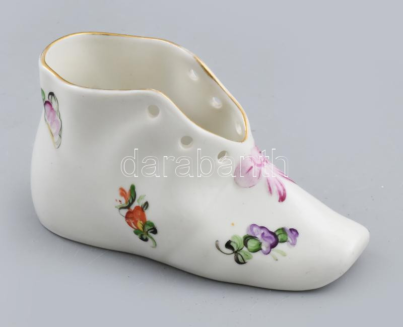 Herendi porcelán cipő. 2. oszt. jelzéssel, kopással, h: 10,5 cm
