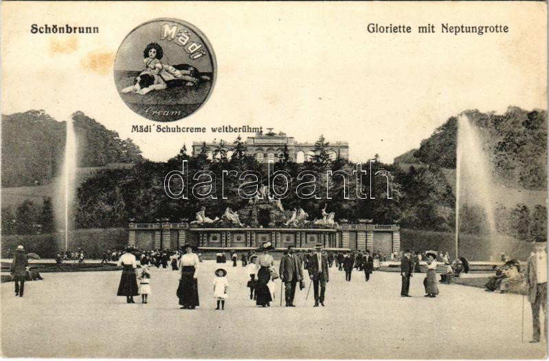 Wien, Vienna, Bécs; Schönbrunn, Gloriette mit Neptungrotte, Mädi Schuhcreme / Mädi shoe cream advertisement (fl)