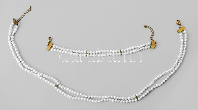 Tenyésztett gyöngy kétsoros nyaklánc, h: 45 cm + karkötő, h: 20 cm