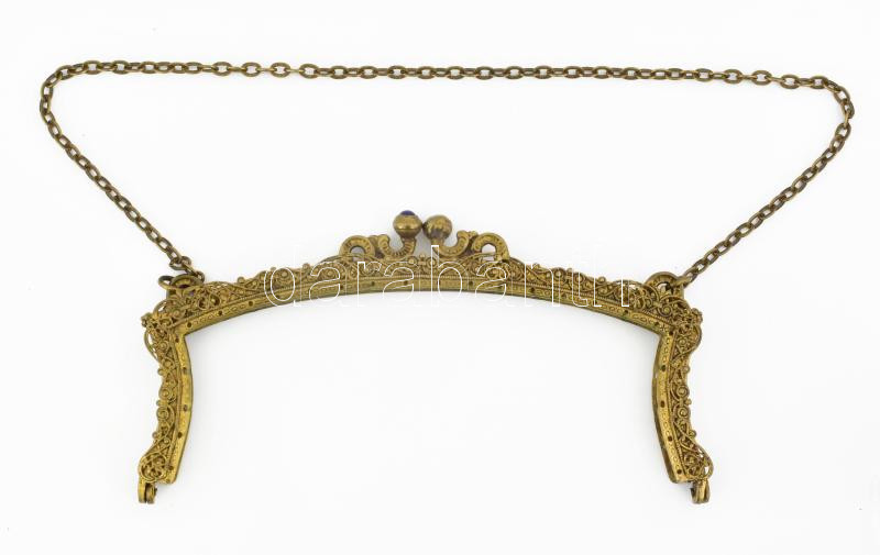 Régi színházi táska alkatrész, zománc festett réz 16 cm