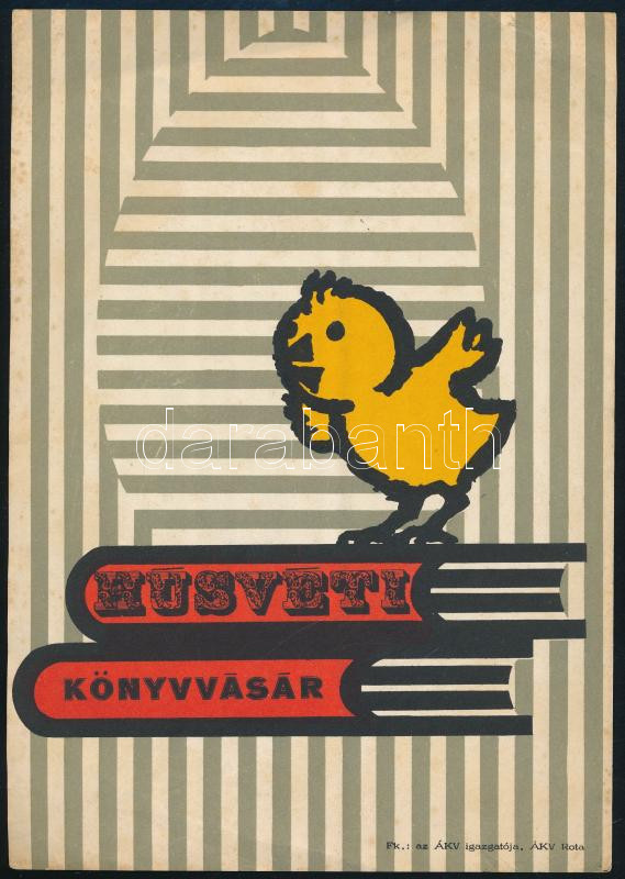 cca 1965 ÁKV húsvéti könyvvásár, kisplakát / villamosplakát, kissé foltos, 24,5x17 cm