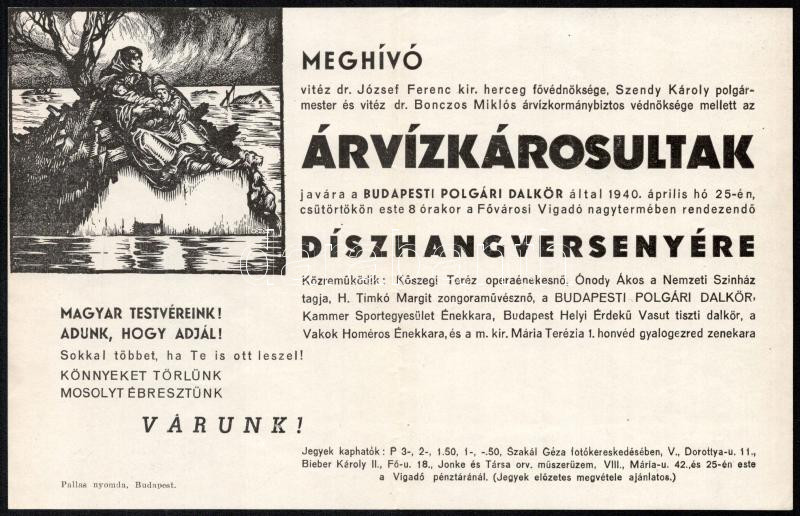 1940 Meghívó az árvízkárosultak javára a Budapesti Polgári Dalkör álta...