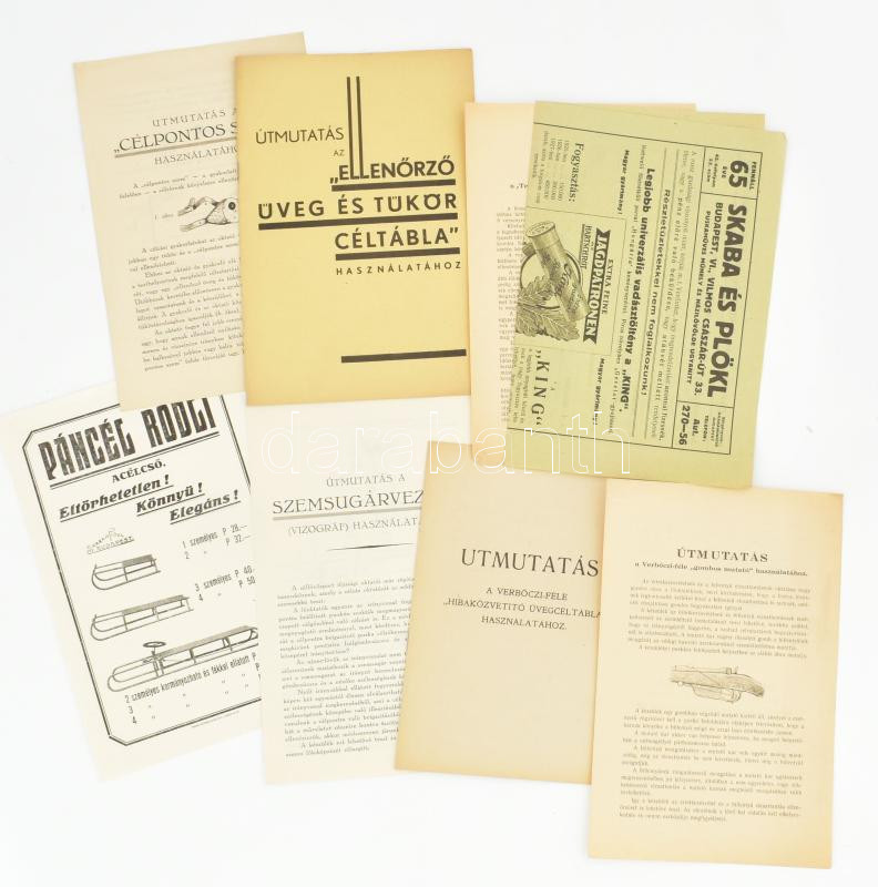 cca 1930-1940 Verbőczi-féle (Verbőczy Kálmán) célzást segítő eszközök útmutatói, 5 db + 3 db Skaba és Plökl reklámlap