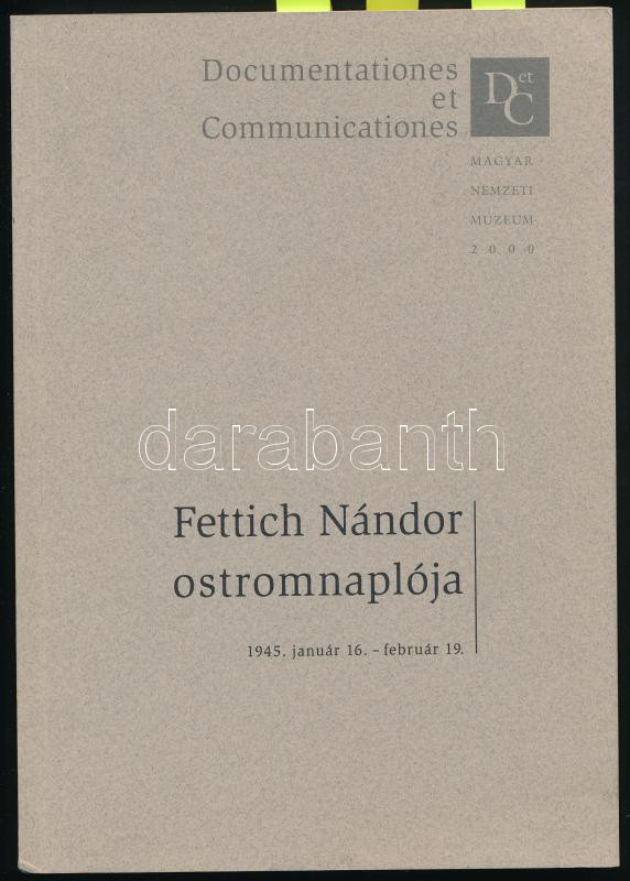 Fettich Nándor ostromnaplója 1945. jan. 16. - február 19. Sajtó alá re... https://www.darabanth.com/en/453-Online-auction/453.0/Books/Books-History~1500019/Fettich-Nandor-ostromnaploja-1945-jan-16-februar-19-Sajto-ala-rendezte-a-jegyzeteket~II3017272