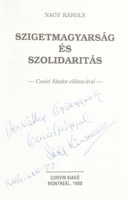 https://www.darabanth.com/en/453-Online-auction/453.0/Books/Books-Other-rarities~1500035/Nagy-Karoly-Szigetmagyarsag-es-szolidaritas-A-szerzo-altal-DEDIKALT-peldany-Montreal-1988-~II3014924