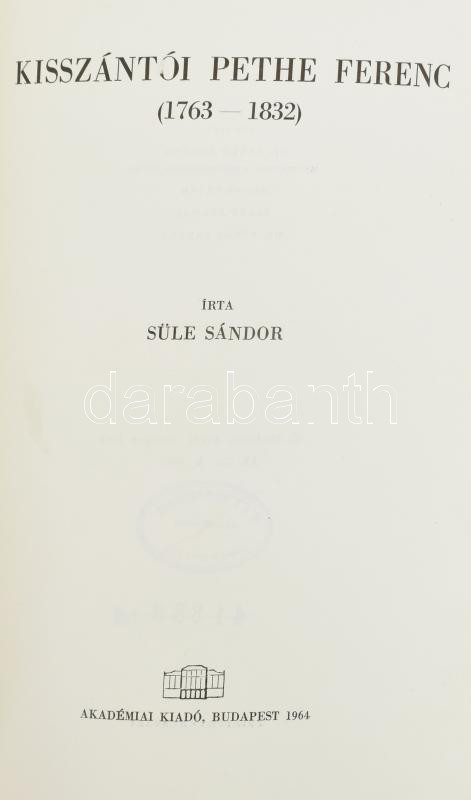 https://www.darabanth.com/en/453-Online-auction/453.0/Books/Books-Other-rarities~1500035/Sule-Sandor-Kisszantoi-Pethe-Ferenc-Budapest-1964-Akademiai-Kiado-Egeszvaszon-kotes-~II3022179