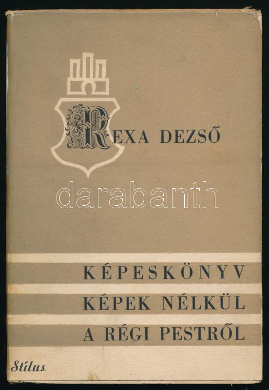 Rexa Dezső: Képeskönyv képek nélkül a régi Pestről. Bp., [1947], Stilus, 118+(4) p. Kiadói kartonált papírkötés, kissé sérült, foltos kiadói papír védőborítóban.