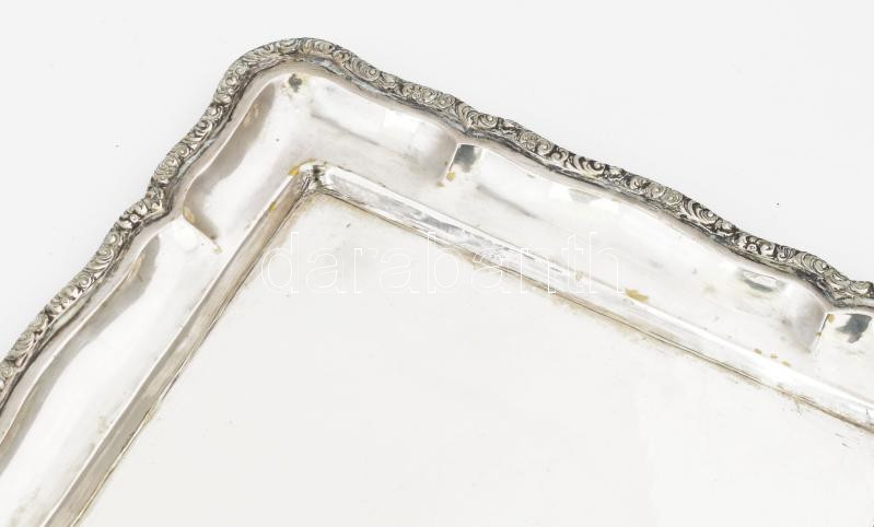 Ezüst tálca, plasztikus díszítéssel a szélén. dianás jelzéssel. Mester...