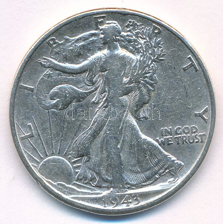 Amerikai Egyesült Államok 1943. 1/2$ Ag "Walking Liberty" tanúsítvánny... https://www.darabanth.com/en/453-Online-auction/453.0/Numismatics/Worldwide-silver-and-metal-coins~2000015/Amerikai-Egyesult-Allamok-1943-12USD-Ag-Walking-Liberty-tanusitvannyal-T-F-kis-phUSA-1943-12~II3018278