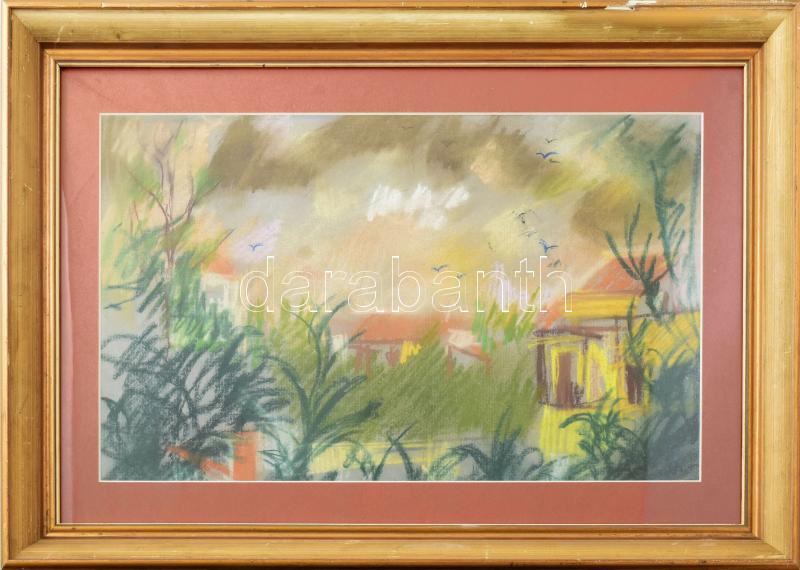 Olvashatatlan (AB?) jelzéssel: Táj házakkal. Pasztell, papír. Üvegezett, dekoratív, kissé sérült fakeretben. 29×39 cm