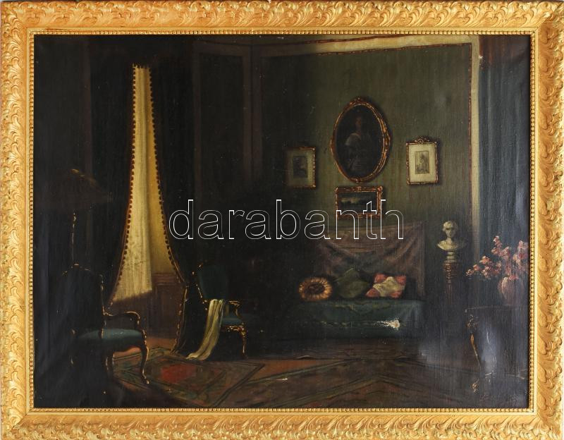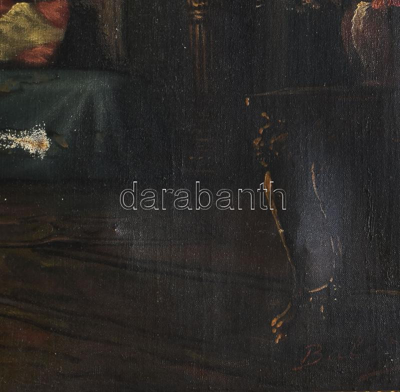 Viski Balás László (1909-1964): Enteriör. Olaj, vászon. Jelzett, keretben Vásznon sérülésekkel 80x60 cm