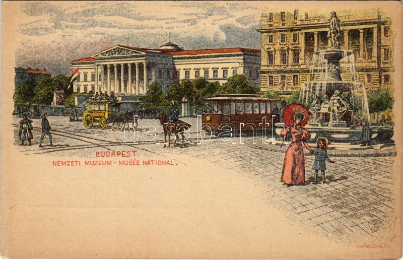 Budapest VIII. Ezredéves Országos Kiállítás, Nemzeti Múzeum és Kálvin tér, villamos. barna 2 Kr. Ga. s: Dörre T., Morelli