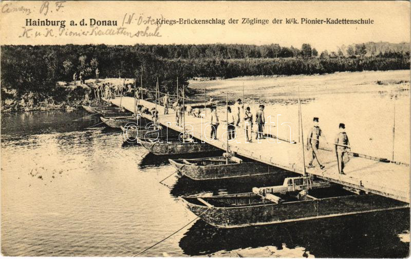 1913 Hainburg an der Donau, Kriegs-Brückenschlag der Zöglinge der k.k.... https://www.darabanth.com/en/453-Online-auction/453.0/Postcards/Militaria~1000071/1913-Hainburg-an-der-Donau-Kriegs-Bruckenschlag-der-Zoglinge-der-kk-Pionoer-Kadettenschule-~II3020757