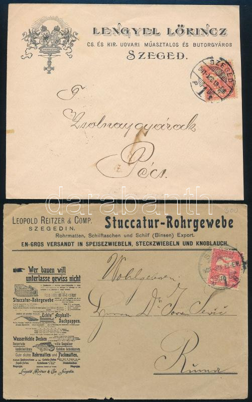 cca 1900 Szeged Lengyel Lőrinc műasztalos és Leopold Reitzer Stuccatur reklámos boríték