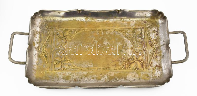 Albert Köhler & Co. art nouveau kétfüles kínálótál. Ezüstözött alp...