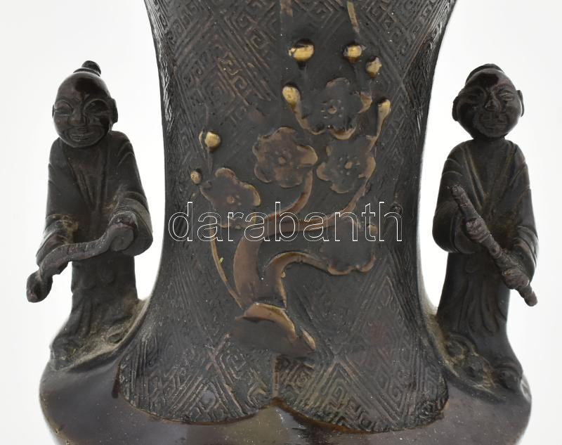 Antik kínai kétfigurás bronz váza, jelzés nélkül, minimális kopottsággal, m: 16,5 cm
