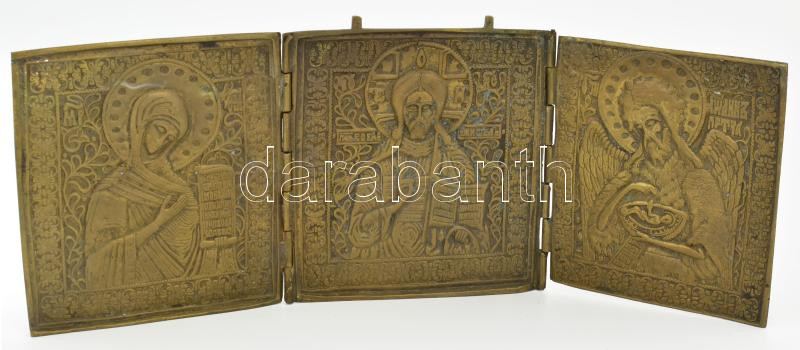 Antik orosz utazó triptichon, bronz, jó állapotban, 14×35 cm