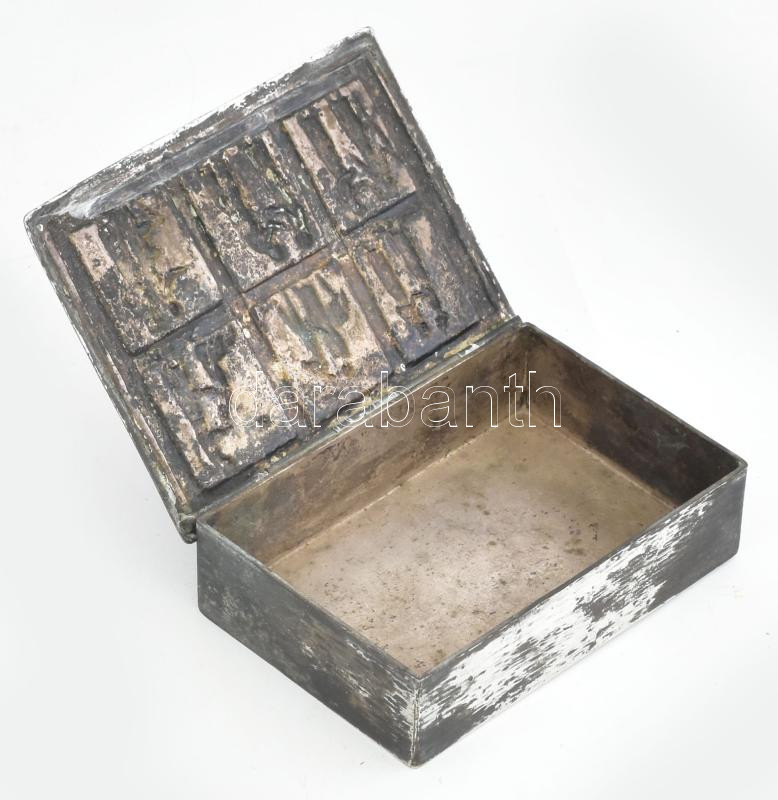 Tevan Margit (1901-1978): Iparművész fém doboz, plasztikus figurális d...