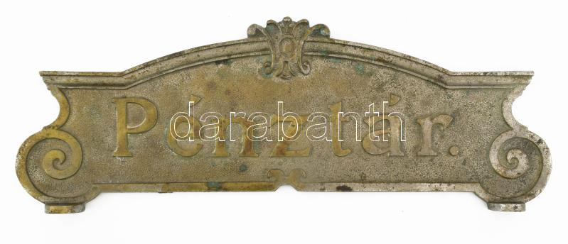 cca 1900, Pénztár fém tábla, kopással, 2 rögzítőponttal, 25x9 cm