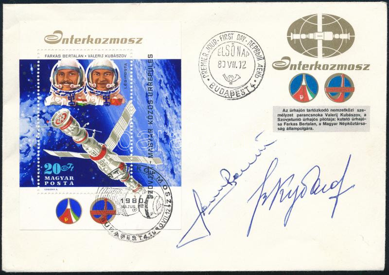 1980 Farkas Bertalan (1949-) és Valerij Kubaszov (1935-2014) űrhajósok aláírása Interkozmosz FDC-n