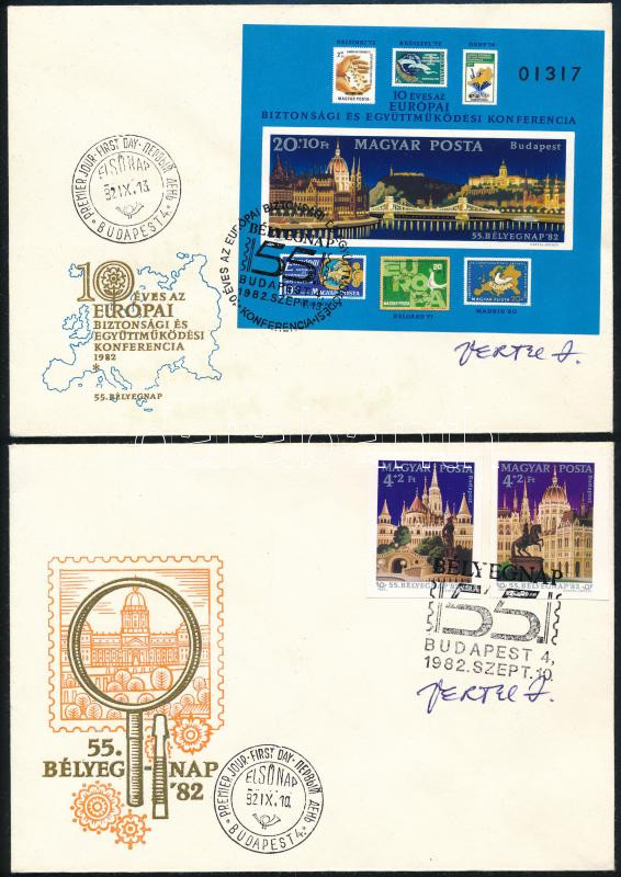 1982 Bélyegnapi sor és blokk FDC-n a tervező Vertel József aláírásával