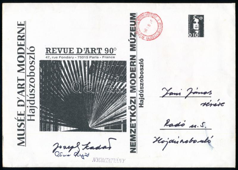 1996 Göncz Árpád (1922-2015) köztársasági elnök és Joseph Kádár (1936-2019) festőművész autográf aláírásai borítékon