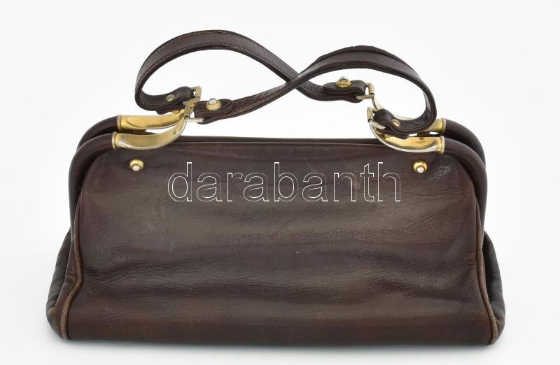 cca 1960-1970 vintage elegáns női barna bőr kézitáska, fém szerelékkel...