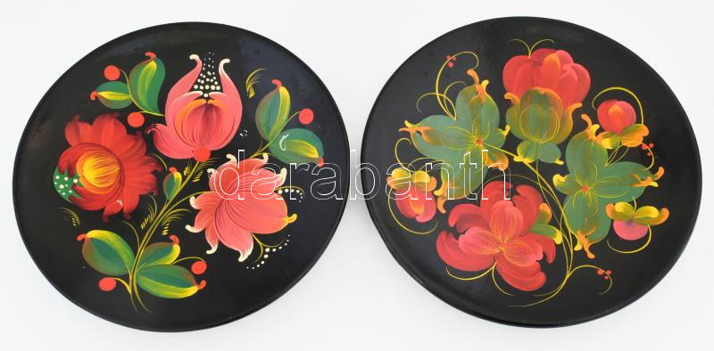 2 db kézzel festett lakkozott fa tányér d: 25 cm