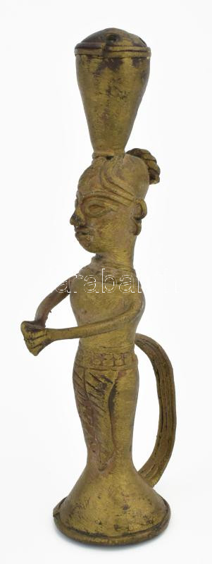 Bronz nőalakos figurális fogó / dísz, kopással, m: 14 cm