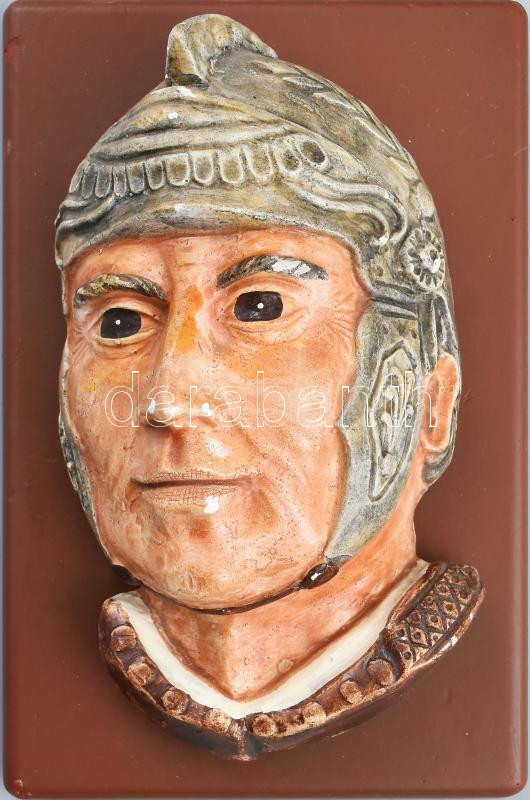 Római gladiátort ábrázoló festett gipsz fali dísz. 12x19 cm