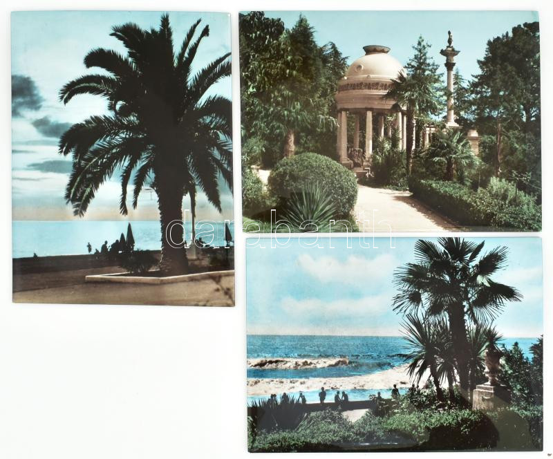cca 1979 Szocsi, tengerparti képek, 3 db szovjet falikép, 24x18 cm