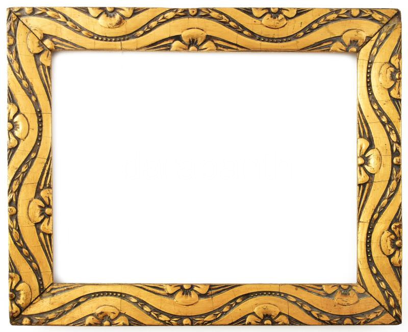 Szecessziós, antik, kissé sérült fakeret, belső méret: 25,3×33 cm.