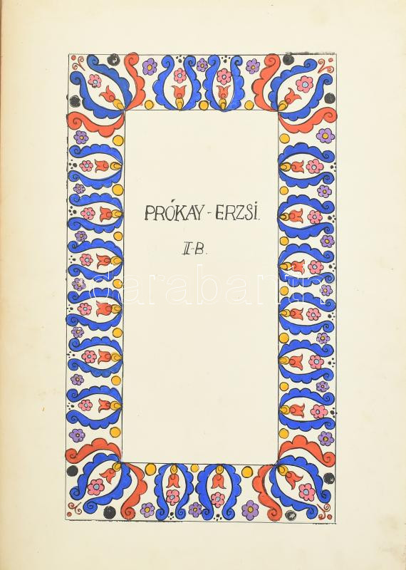 1929-1932 Bp., Prókay Erzsébet polgári leányiskolai tanuló munkái: népművészeti és egyéb díszítőminták, motívumok; hímzésminták, vázlatok, stb.; összesen kb. 30 db. Vegyes technika, papír. Különböző méretekben. + Az Ifjú Polgárok Lapja által meghirdetett kézimunka-pályázaton való részvételért kiállított oklevél.