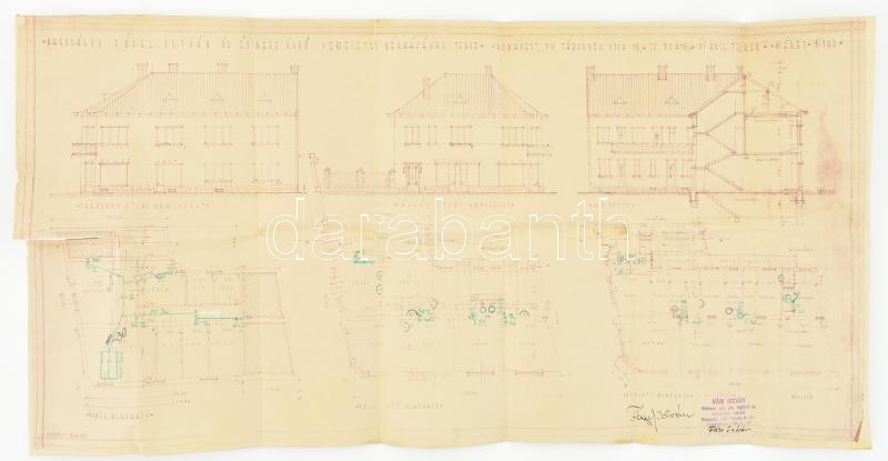 1937 Bp., XIV. (Zugló) Tábornok u. 16/a sz. alatti telken építendő bérház tervrajza, 1 : 100, aláírásokkal, bélyegzőkkel, hajtva, 78x39,5 cm