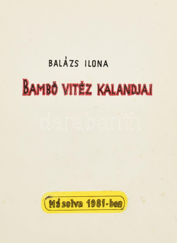 1981 Balázs Ilona: Bambó vitéz kalandjai, kéziratos másolat, kartonált papírkötésben, 73 p.