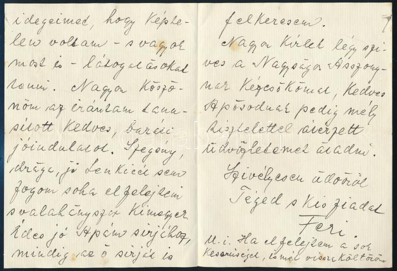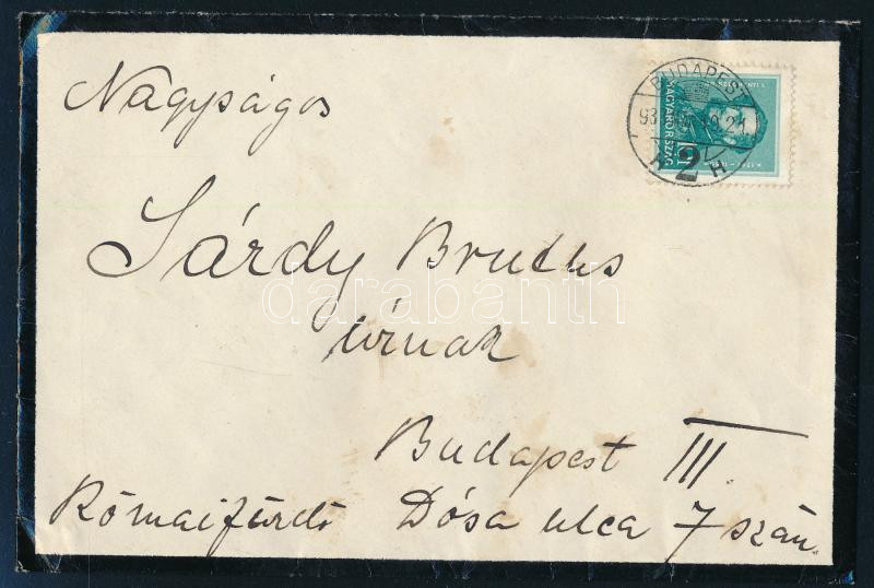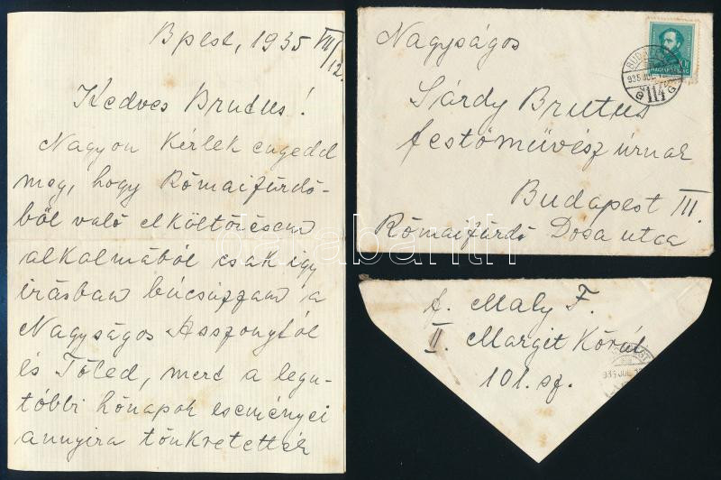 cca 1933-35 2 db Maly Ferenc által Sárdy Brutus (1892-1970) restaurátornak küldött levél, az egyikben a Rómaifürdőről való elköltözését taglalja.