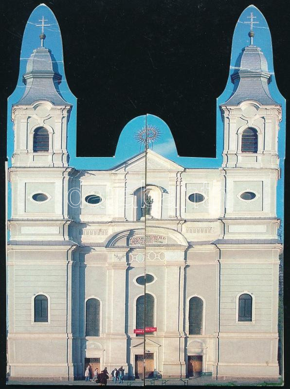 cca 2000-2010 "CsÃksomlyói székely anyaföld a Szűzanya lábától". Erdély egyik legismertebb zarándok- és kegyhelyérÅ‘l származó emléktárgy. A csÃksomlyói kegytemplomot ábrázoló, kihajtható papÃrtok, benne egy tasak földdel. 15x11 cm