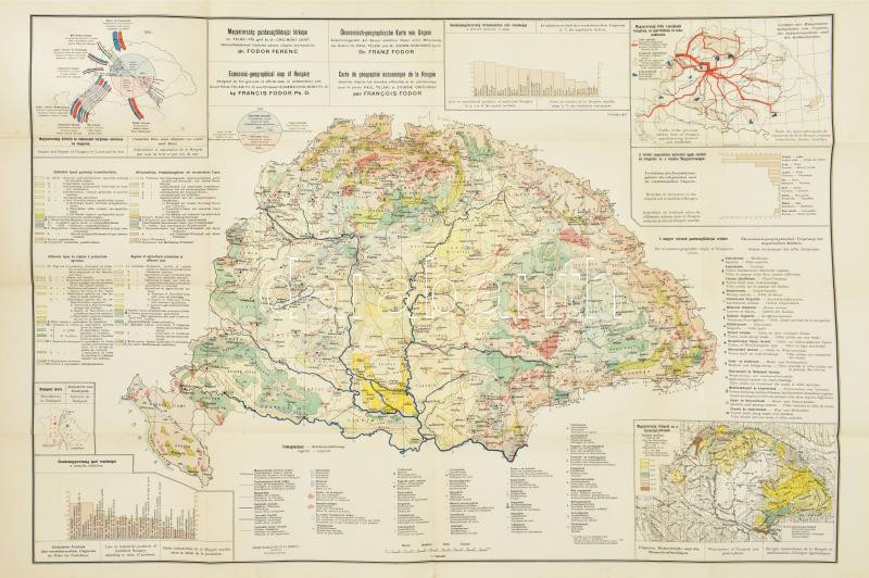 1921 Magyarország gazdaságföldrajzi térképe. Dr. Teleki Pál gróf és dr. Cholnoky Jenő közreműködésével szerk.: dr. Fodor Ferenc. 1 : 1.500.000, Bp., Magyar Földrajzi Intézet Rt., II. kiadás. Gazdasági adatokkal, statisztikákkal, közte a trianoni békeszerződés által okozott ipari és gazdasági veszteségekkel, két nyelven (magyar, angol), hajtott,, 63x95 cm