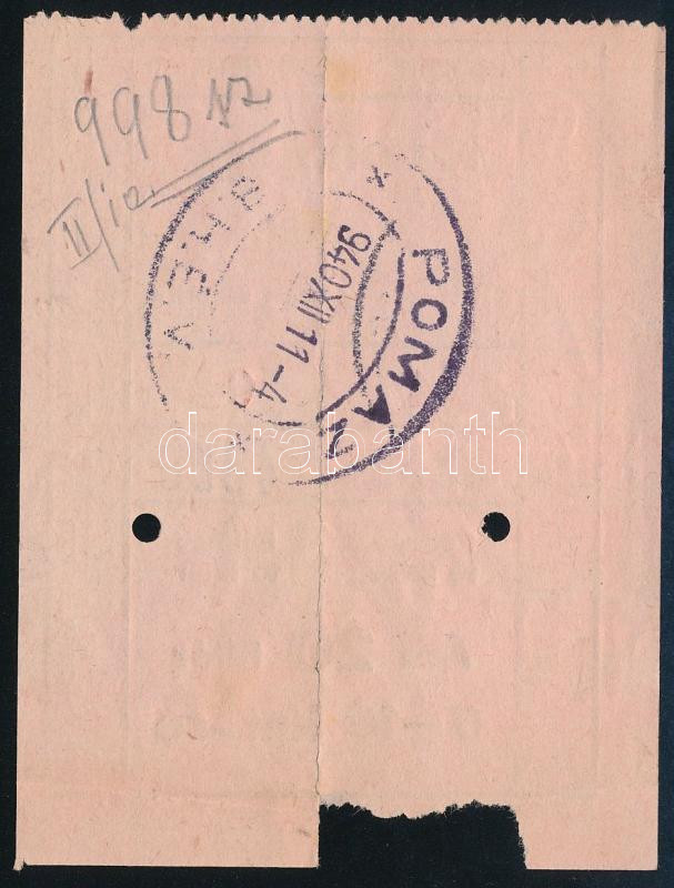 Description: 1940 III. osztályú katonajegy, Budapest Helyi Érdekű Vasutak Rt. Pomázról Budapestre, 6-10 km-es viszonylatban, a hátoldalon "Pomáz BHÉV 940XII14" bélyegzéssel