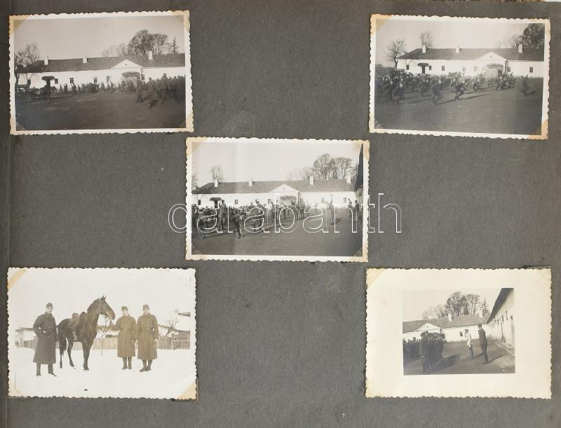 cca 1942-1944 Magyar katonák a Don-kanyarban, albumba ragasztott fotók, rajzok, stb., vegyes méretű fotókkal