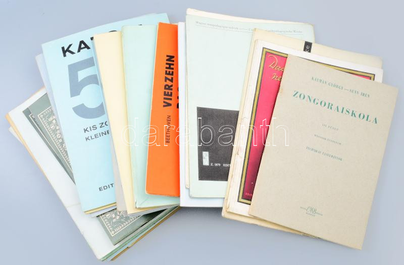 26 db modern zongora kotta, zongoraiskola, Kodály, stb egyéb zenei kották, jó állapotban