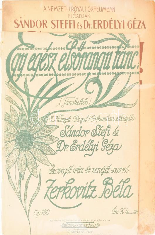 cca 1920-21 3 db Zerkovitz Béla kotta (Egy egész elsőrangú tánc, Csicsóné!, Deborah). Megviseltebb, ragasztott állapotban.