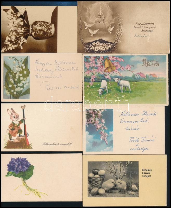 18 db régi húsvéti üdvözlőkártya, többségükön kézzel írt sorokkal, vegyes méretben és állapotban
