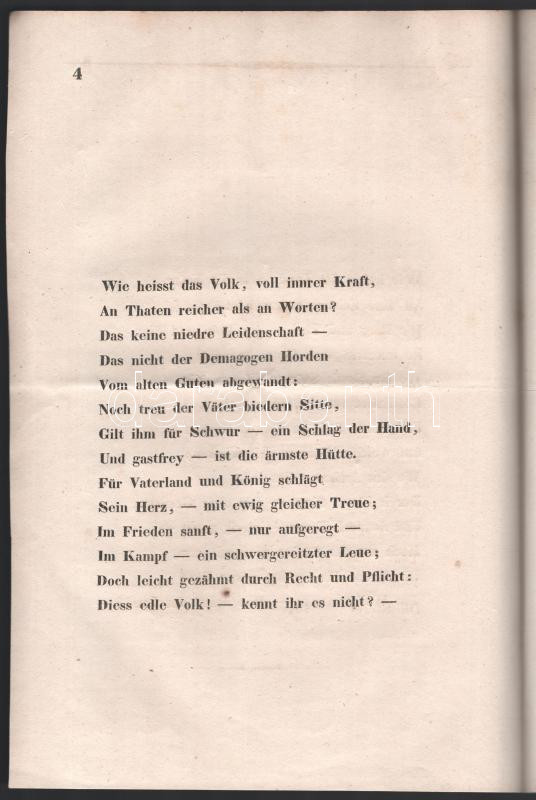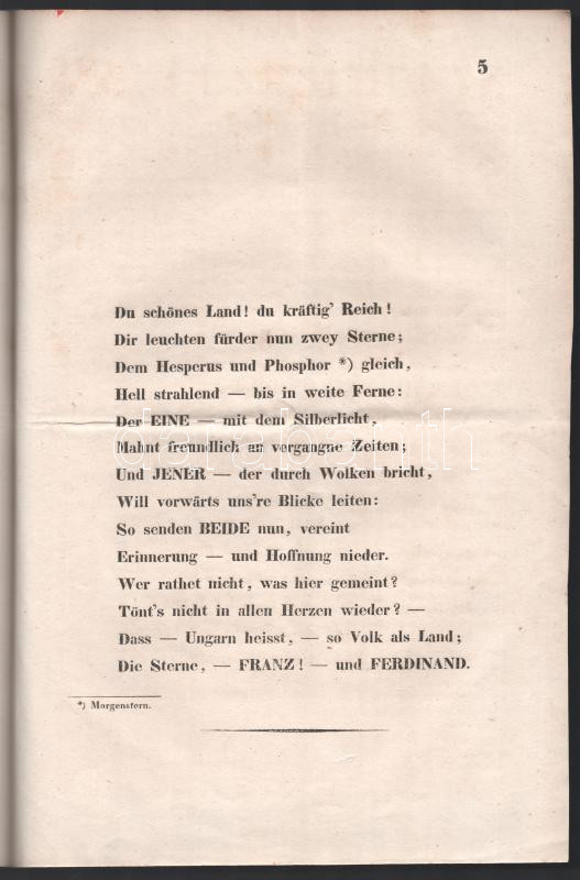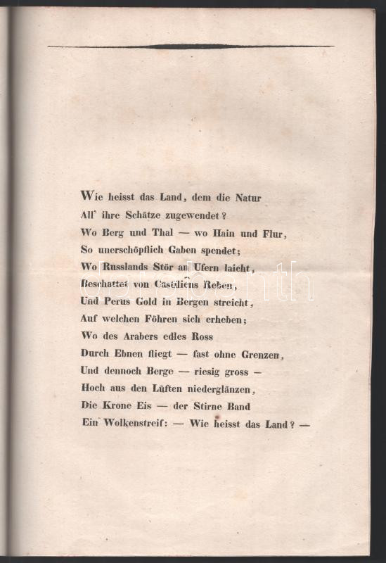 Description: 1830 Die beiden Sterne. Gedicht von Joseph Stierle Holzmeister, k. k. Hauptmann. Pozsony, 1830, Landerer. 5 p. Német nyelven. Ritka, Magyarországot éltető költemény. Javított papírkötésben.