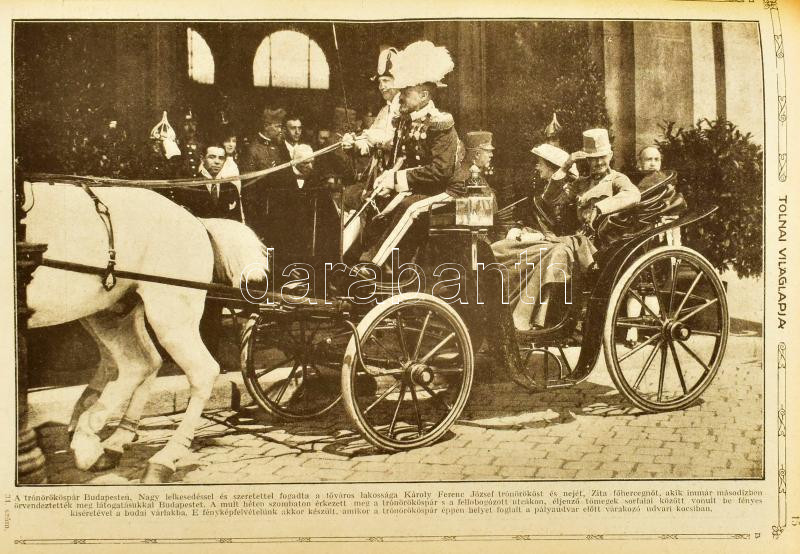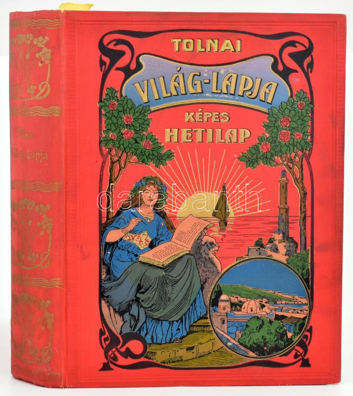 1915 Tolnai Világlapja, fél évfolyam, XV. évf. 27.-52. sz. (1915.VII.1-XII.23.). Rengeteg I. világháborús fotóval, illusztrációval és írással. Szecessziós, festett egászvászon kötésben, borítón és gerincen apró kopásnyomokkal, első lapon kisebb sérüléssel, első néhány lap szélén kisebb folttal, máskülönben jó állapotban.